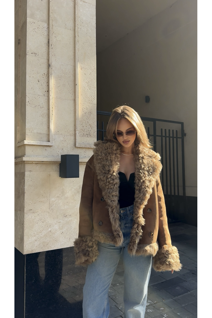 Стильна двостороння замшева дублянка в кольорі кемел |