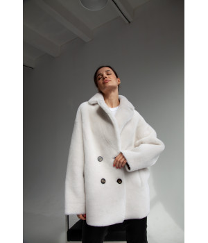 Стильна дублянка-піджак з натуральної овчини, хутро ніжно-молочного кольору, тильна сторона бежева. Крутий, стильний і дуже теплий варіант, який зігріватиме в холодну, зимову погоду!